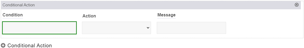 Show Error: Shows an error message, which can be used for validation. For example, if the condition is #input/Age < 18 you can put an error message "You must be over 18 to complete this.".