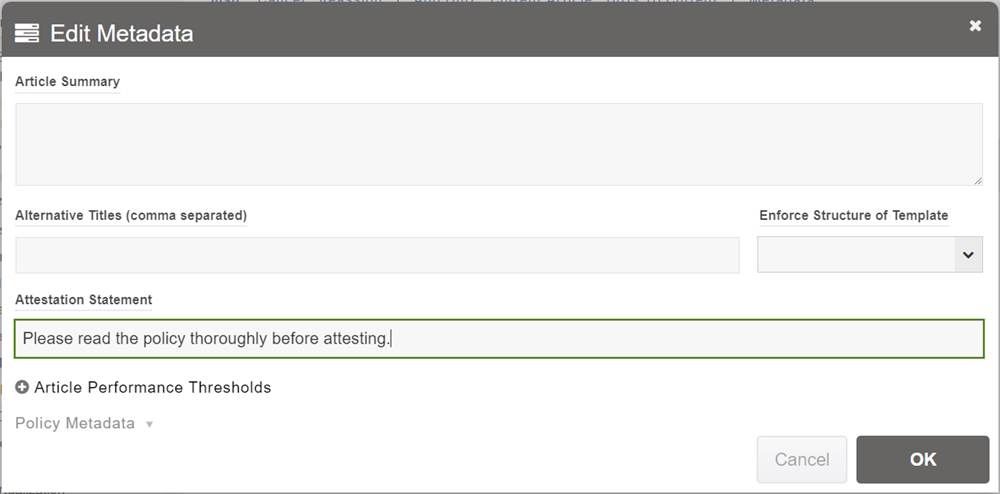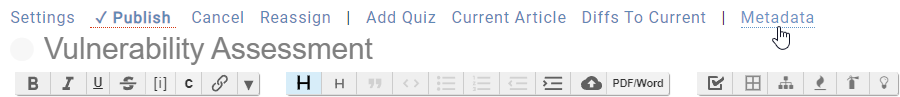 To do this, edit the article that you will be sending the attestation request for. On the edit page, go to "Metadata":
