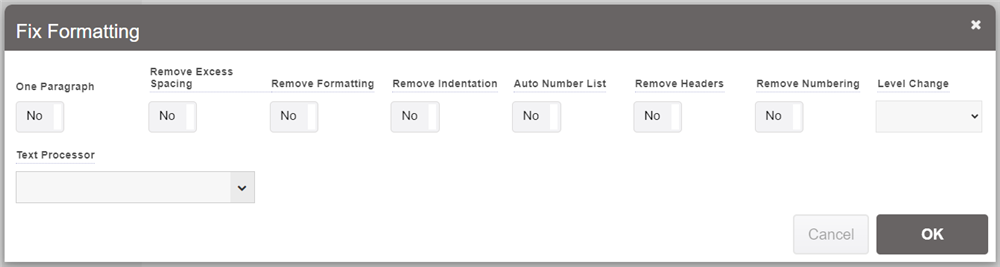 - Remove All Indentation: Left margins in text are automatically translated into indentations. You can use this option to remove all of these indentations.