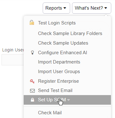 Once you have created that user, log in as an administrator and then go to the Configuration tab. Next click on "Authentication Settings". Now click "What's Next" and select "Setup SCIM":