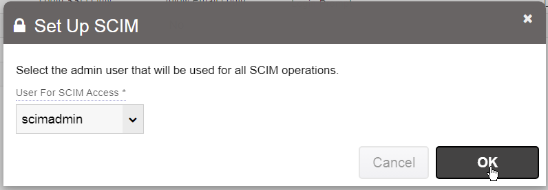 In this form you will select the SCIM administrator user you just added. This list will only show User Manager users or admins.