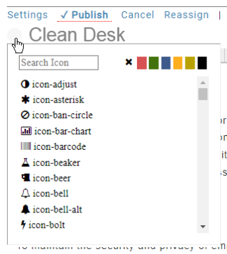 You can then select a color for the icon from one of the 6 colors provided. After selecting the color, click the icon you wish to use and the editor will close and that icon will then be selected.