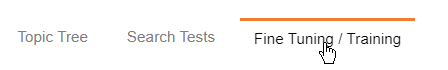 5. You can then go back to your Search Tests, and there'll be a new button: "Test Fine-Tuned". Click this and it will pose the same question, without the guidance text, to the fine-tuned model that just completed. This way you can check the response to make sure it works, or if you need to go back and refine your training data.