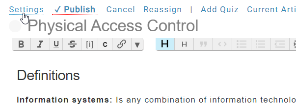 Multiple approvers can be set on an article. You can set approvers when you are editing the article by clicking the Settings link above the article editor.