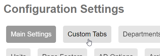 A list of Custom Tabs/Fields will display and allow you to configure your tabs, if any are currently set.