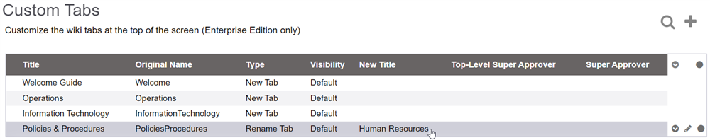 If you want to rename a Custom Tab, which is a tab you have already customized, hover over the tab in the list and click on the pencil icon on the right, to edit its record.