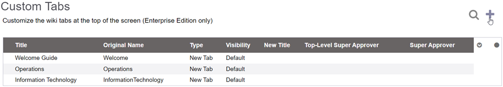If you want to rename a Default Tab (a System Tab such as "News"), there won't be an entry in the list for it. An entry must be first created, similar to adding a new tab. Click on the + symbol to proceed.