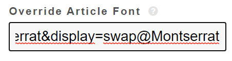 To use a custom article font, enter in the name of a built-in system font in Override Article Font.