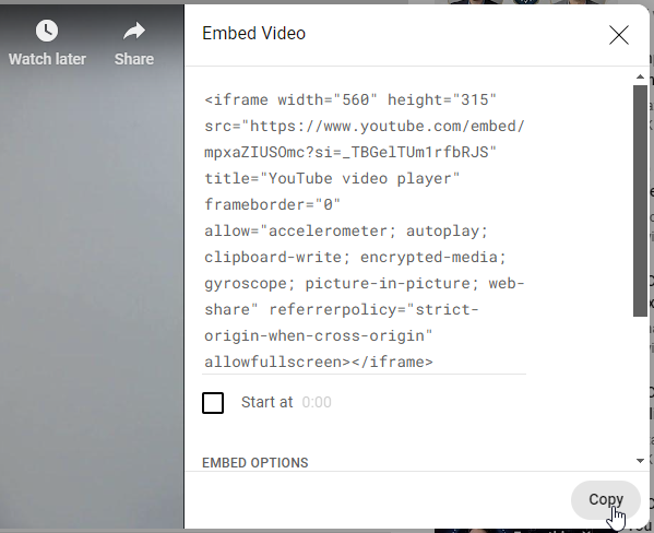 For the sake of simplicity, click on the 'Copy' button in the lower right corner. This will copy the embed code for you.