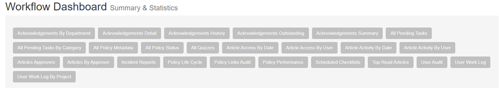 There are two types of reports in the system: contextual reports and global reports. You can run global reports from the dashboard, which will be available to any admin or Wiki Manager.
