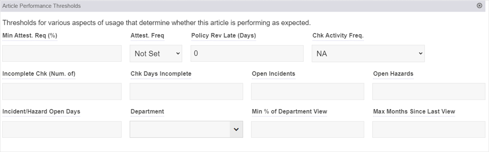 You can edit the Performance Thresholds in the Metadata section when editing an article. Once on that form, click the "+ Article Performance Thresholds" link to expand the sub-form with the various thresholds:
