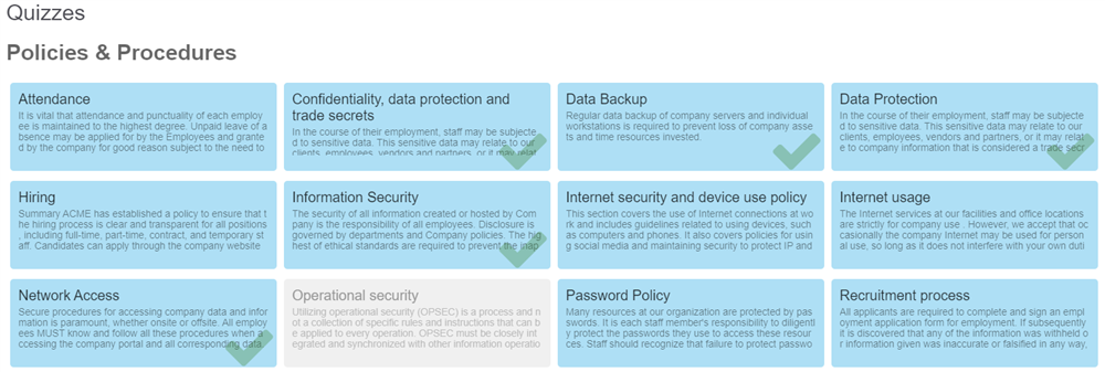 Quizzes and certificates can be a great way to verify what your staff have learned through the training material you have provided in your site, and generally to reinforce your policies and procedures.