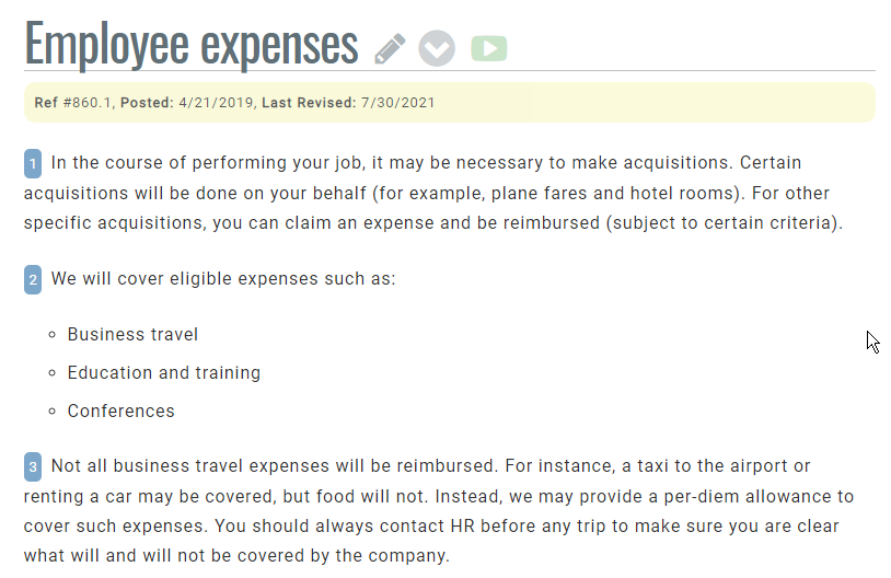 While you can add numbered lists into articles as shown above, you can also have your site show all articles with numbered paragraphs. This can be useful if you need to frequently reference specific paragraphs in policies or procedures.