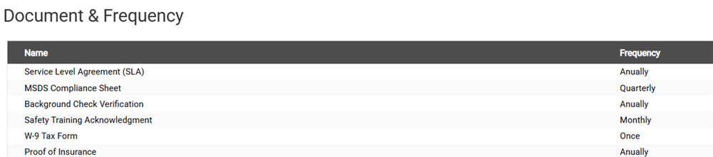 Categories are pre-set templates of documents required, and a schedule for how frequently the document must be supplied. For example, you may need certain staff members to get their license renewed every year - you can add that to the document schedule for a Staff Category called "Nurse", along with other documents you need from them.
