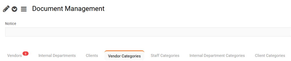 To access each area, when in the Document Management area, click on the Category tabs below: