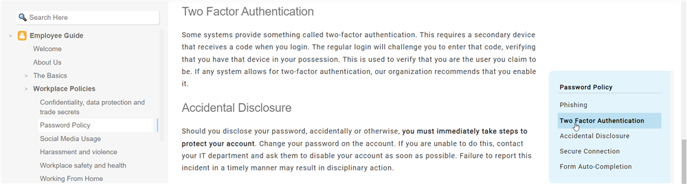 When articles have more than 2 headings, our platform will add a secondary navigation box on the right with a list of heading titles to allow for quicker browsing of an article.